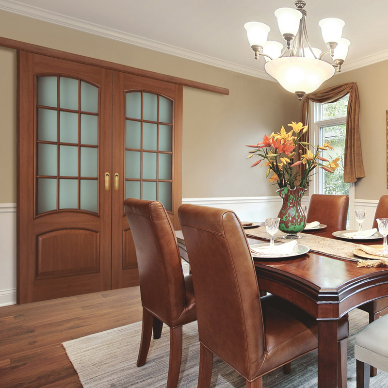 - гостиные и столовые. Здесь особенно выгодно смотрятся варианты, оборудованные крупными стёклами;