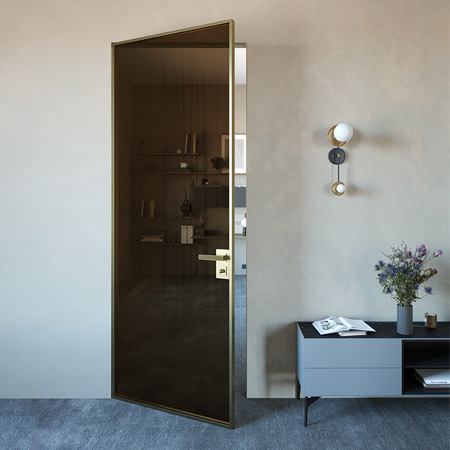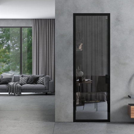 - Стекло: Стеклянные вставки или полностью стеклянные двери в алюминиевом каркасе выглядят стильно, устойчивы к перепадам температур. Закаленное стекло и триплекс – безопасные виды стекол. Возможно исполнение в непрозрачном окрашенном стекле – матовом или глянцевом вариантах, более 3000 цветов и оттенков.
