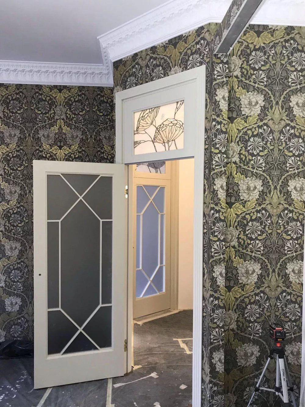 - В интерьерах с высокими потолками, где нужно заполнить пространство над дверью.