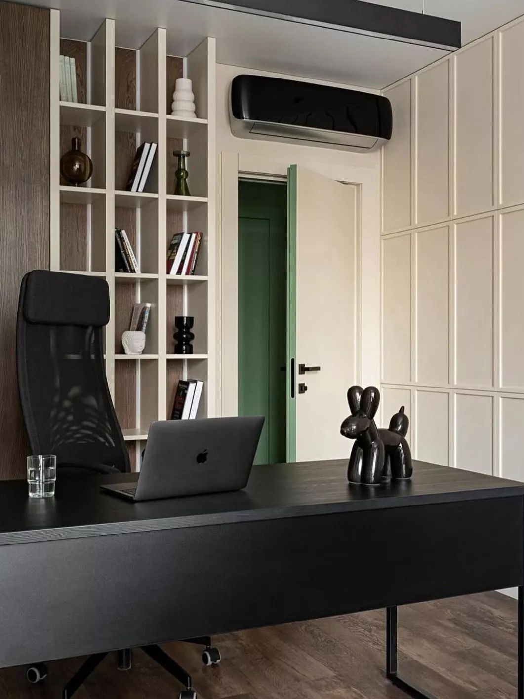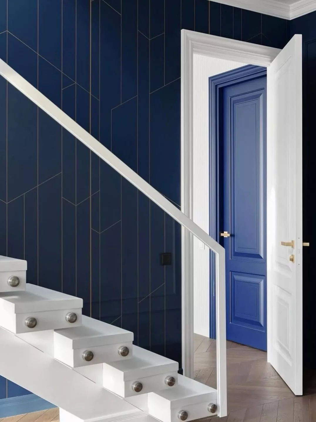 - Современный стиль: Глянцевые или матовые двери в минималистичном дизайне. Отсутствие лишних деталей и декора, прямые линии и четкие геометрические формы, яркие акценты или пастельные цвета.