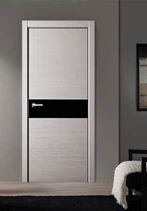 с использованием вставок тёмного триплекса в оформлении полотен, облицованных шпоном белого дуба или ясеня либо окрашенных эмалью. Именно такие изделия представляет торговая марка Academy в коллекции Torino. Возможен и обратный эффект - матовые или белоснежные стёкла дополняют облик створок, выполненных в насыщенном цвете;