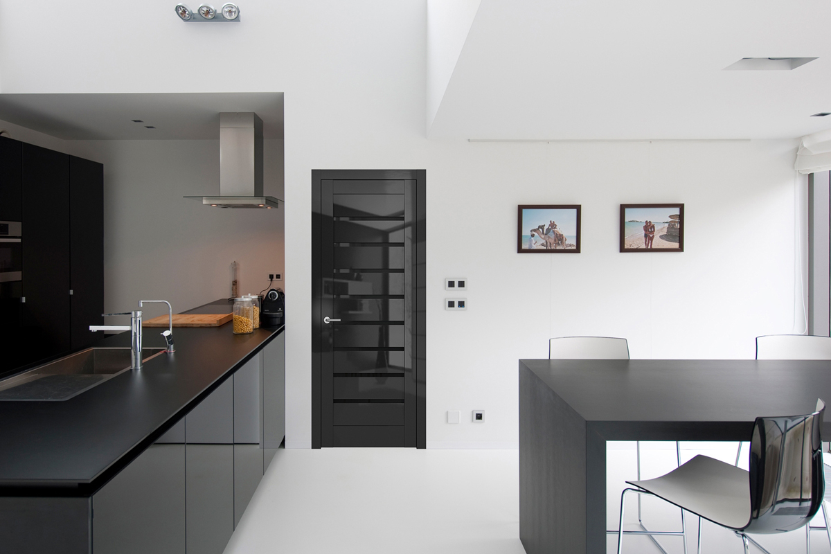 Когда хочется сделать жилое или офисное пространство более статусным и дорогим, не вкладывая серьёзных средств, в роли его финального штриха стоит использовать чёрные крашенные двери. Подобные решения не назвать простыми. Использованные в неверных сочетаниях, они рискуют создать угнетающую атмосферу в помещении, уменьшить площадь, поглотить свет. И всё же эстетический потенциал изделий, оформленных в самом шикарном и глубоком цвете, безграничен. Они позволяют: