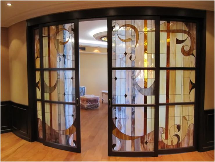 Поскольку элитные решения чаще всего создаются в индивидуальном порядке, никаких ограничений в выборе их внешнего вида нет. В оформлении створок учитываются декоративные особенности интерьеров, рекомендации дизайнеров, собственные пожелания клиентов. Выстроить эксклюзивный облик пространства позволяют конструкции: