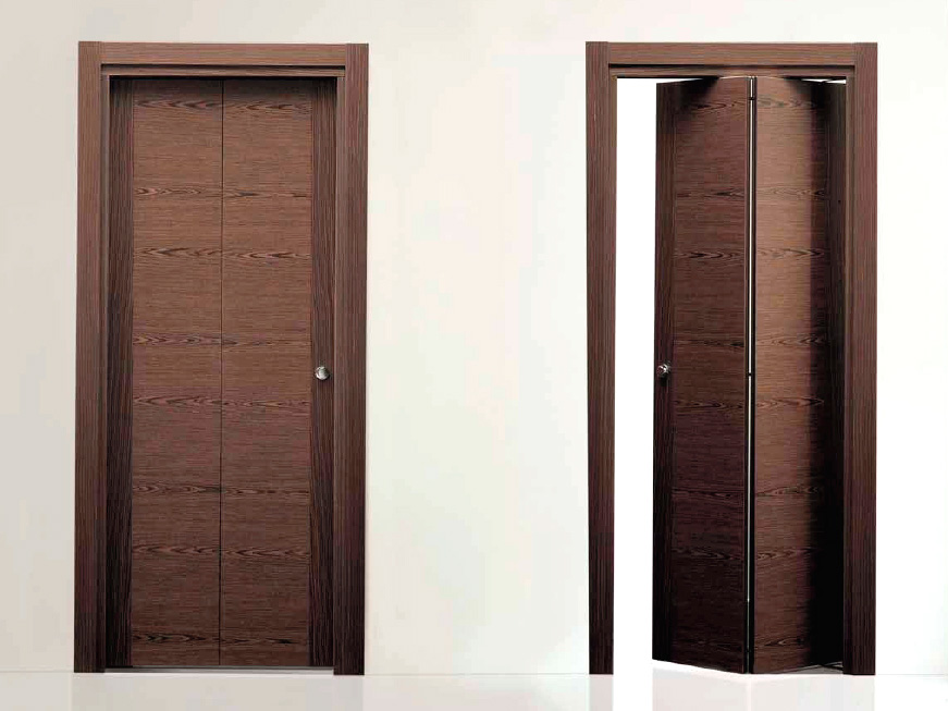 Декоративное многообразие дверей-книжек из МДФ - результат податливости искусственного материала к различным обработкам и его сочетаемость с любыми покрытиями. Современные производители не выделяют складные системы в особую категорию, используя в их оформлении те же облицовки, которые участвуют в создании обычных цельных створок.