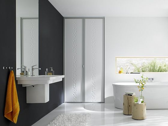 Условия работы в санузлах более сложны и агрессивны, нежели где-либо ещё в квартире. Ситуация усугубляется в отсутствие хорошего принудительного проветривания помещения. К тому же, на маленьких площадях все источники воды находятся неподалёку от проёма и велик риск попадания брызг на отделку и фурнитуру. Поэтому, решая купить двери-книжки в ванную, необходимо: