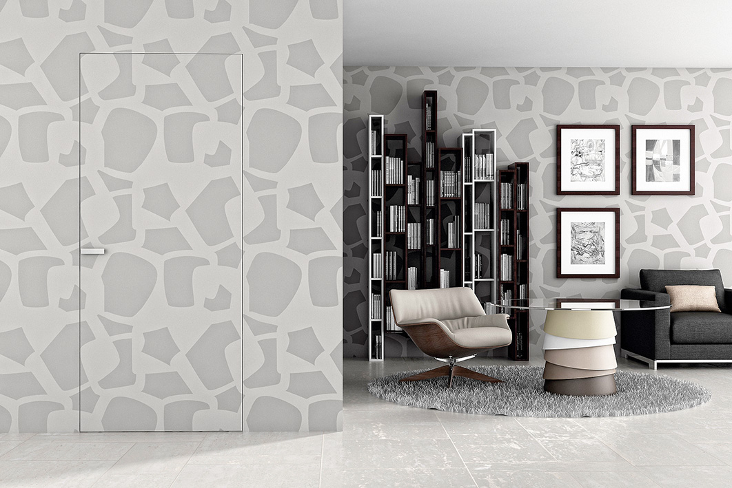 Одним из эффективнейших методов реализации потайной системы открывания является дверь-невидимка под обои. Преображение конструкции подобным образом - дело малозатратное, оперативное и не требующее чрезмерных усилий. Полотно, профессионально закреплённое вровень со стеной, легко спрятать за её покрытием, обеспечив полное совпадение узора. Единственное, что в результате останется на виду - небольшой идеально ровный зазор по периметру створки, но и его можно замаскировать, выбрав отделку с рисунком вертикальных линий.