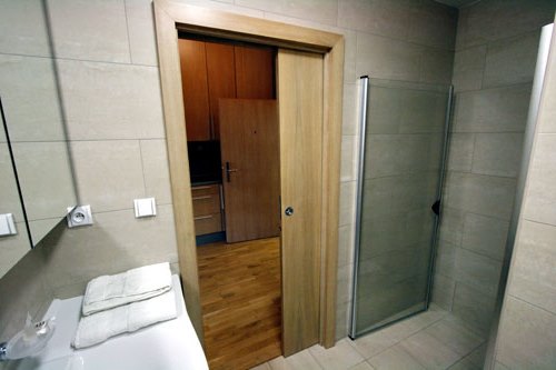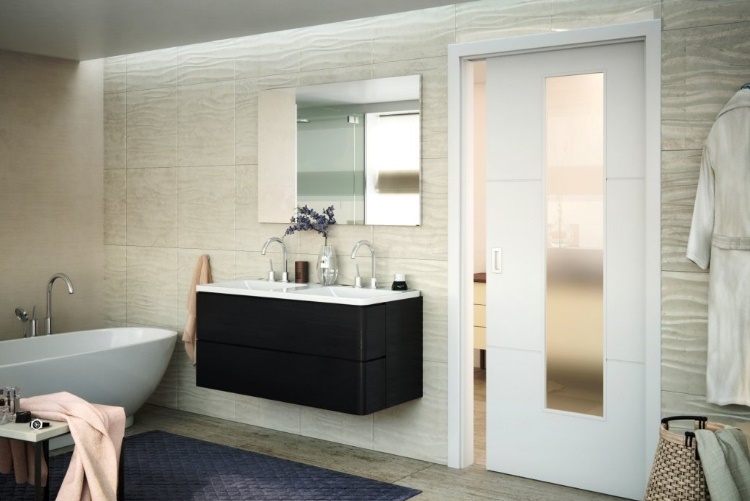 - хорошими изолирующими свойствами. Купить двери-пенал для ванной комнаты стоит, если требуется исключить проникновение пара в смежные комнаты. Среди множества откатных конструкций данное инженерное решение обладает самыми высокими показателями тепло- и звукозащиты;
