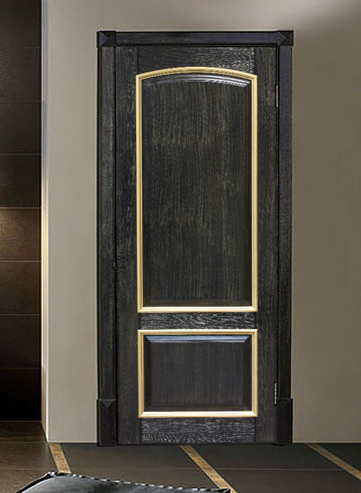 В производстве классических конструкций используют натуральное дерево, которое от природы обладает тёмным цветом (например, эбен или палисандр) либо обрело его после процедуры морения. Великолепно смотрится и чёрная дверь с золотом, окрашенная эмалью.