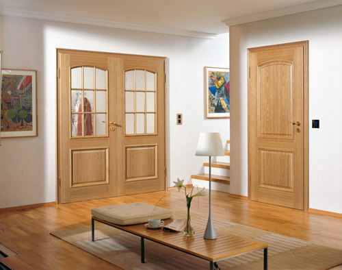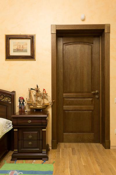 внутреннее заполнение в виде хвойного бруса, МДФ или мелкоячеистого картона. Для комнаты, которая нуждается в полноценной защите от шума и теплопотерь лучше приобрести модель со сплошным древесным наполнением.