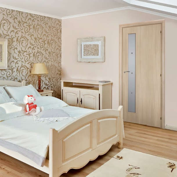 1. Lady. Модели с экошпоном под дуб подчинены классическому стилю, балансирующему на гране с современной сдержанностью. Строгие прямоугольники филёнок или стеклянных вставок, лёгкие порталы и благородная древесная гамма участвуют в создании полотен, которым есть место в офисах или гостиных;