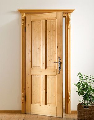 Несомненное достоинство «живого» материала - открытость для любых технических и декоративных обработок. У крупных производителей сегодня можно купить межкомнатные глухие двери из сосны, которые: