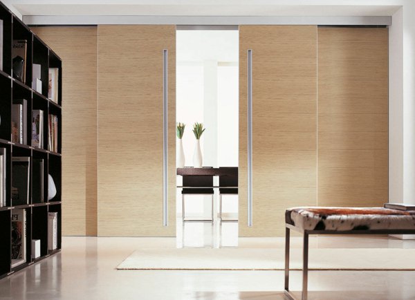 Изготавливая глухие раздвижные двери, современные производители применяют самые разные материалы - натуральное дерево благородных сортов, МДФ, алюминий, их сочетания. В центре откатных систем находятся полотна, которые с тем же успехом можно оснастить петлями - никаких существенных отличий они не имеют.