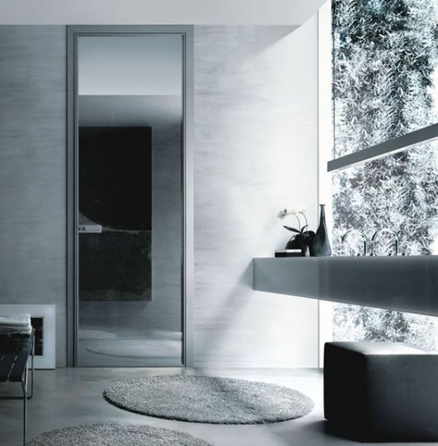 • объединяются с петлями или откатной механикой. В частности, среди запасов крупных фирм реально встретить перегородки из стекла и дерева или алюминия, позволяющие не только закрывать проёмы, но и делить пространство.