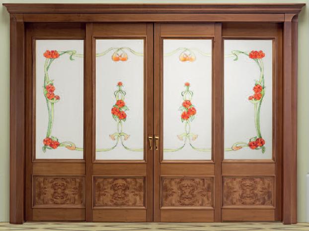 2. стекло сверхстойких разновидностей. Самые красивые межкомнатные двери с универсальными дизайнерскими характеристиками получают из изящных светопрозрачных материалов. Словно сотканные из воздуха и света, они приносят с собой дух свободы, лёгкости, просторности. Стекло подлежит матированию, гравированию, фацетированию. Его украшают ручной росписью, витражами, фотопечатью;