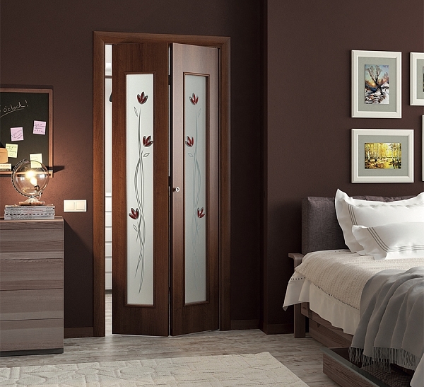 - заметную деталь интерьера - ламинированная дверь-книжка выглядит стильно и необычно. При этом ей найдётся место не только в современном, но и в классическом ансамбле.