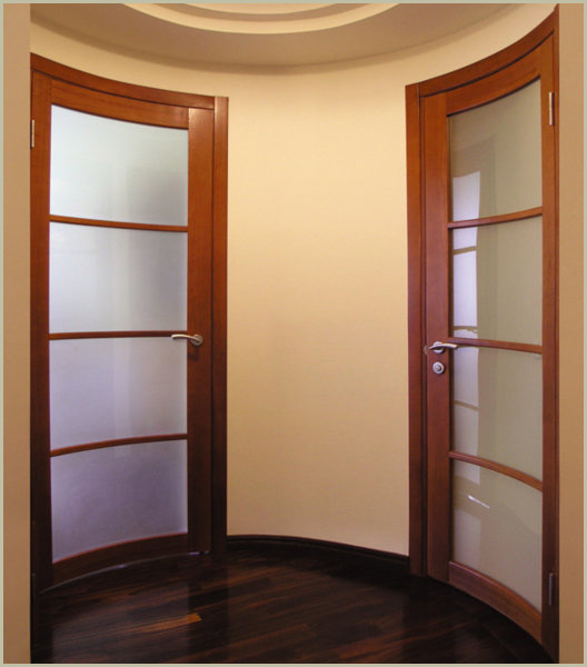 Помимо того, на крупных, хорошо оснащённых фабриках осуществляется изготовление нестандартных деревянных дверей необычной конфигурации. Под заказ производят полотна арочной формы, которые прекрасно смотрятся в классических интерьерах, или радиусные варианты. К категории эксклюзивных решений также причисляют модели оригинального дизайна, над обликом которых работают талантливые художники и мастера деревообработки.