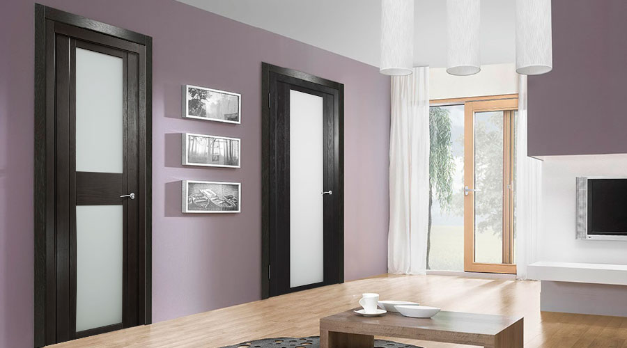 • отталкиваться от цветовой палитры ансамбля. Полотно может совпадать с ней или, напротив, создавать контрастный эффект. Так, на фоне молочных стен выразительно смотрятся конструкции, отделанные шпоном венге или эбена либо выкрашенные в чёрный цвет. Сегодня многие знаменитые бренды предлагают купить новые межкомнатные двери в необычных и экзотических оттенках;