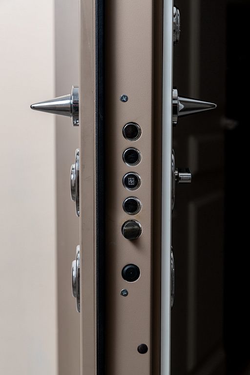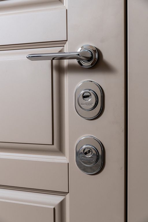 У Дианы установлена входная дверь ЯГУАР серии Penta с биометрической системой доступа -  автономная система открывания двери по отпечатку пальца. Высота двустворчатой двери 240 см. Наше производство воспроизвело конфигурацию филёнок, цвет и пропорции, заложенные архитектором дома Кастелем в 1945 году.