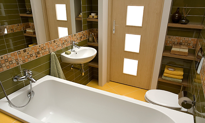 Натуральное дерево, стекло или синтетические покрытия? Створки, изготовленные из массива либо облицованные шпоном, широко применяются в оформлении сантехнических зон и не вызывают нареканий. Но прежде чем отдать предпочтение «живым» материалам, необходимо организовать хорошую систему вентиляции в комнате и позаботиться о том, чтобы источники воды находились подальше от проёма.