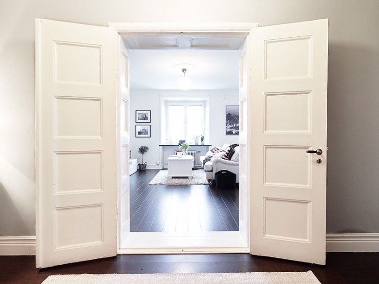 • имеют глухое исполнение и оборудованы стеклом. Принести больше света и воздуха в комнате помогут распашные межкомнатные двери со вставками, а для создания приватной обстановки есть смысл купить глухую конструкцию;