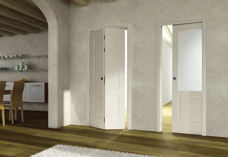 1. книжки. К данной категории относятся межкомнатные двери, складывающиеся пополам, и асимметричные полотна, один сегмент которых вдвое шире другого. Продукция такого типа успешно заменяет обычные цельные конструкции в проёмах любых помещений. Она обладает неплохими изолирующими свойствами, надёжна, вынослива;