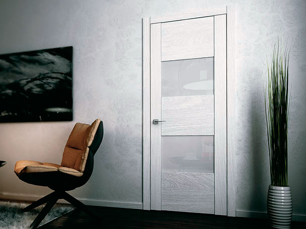 2. матированные по технологии химического травления или пескоструя. Современные межкомнатные двери со стеклом, словно окутанным дымкой, подходят для монтажа в ванных или спальнях. Уровень матовости можно варьировать, в том числе, добиваясь полной непрозрачности полотна;