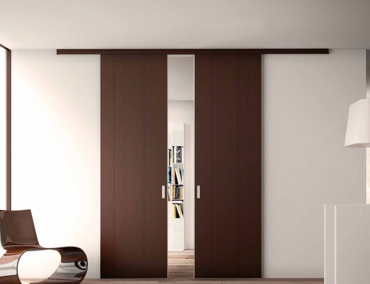 Во-первых, современные раздвижные двери хорошо собой и многообразны. На них обращают внимание, они выступают в роли достопримечательностей помещений. Откатными элементами сегодня комплектуются практически любые решения - стиль, материалы, размеры большого значения не имеют.