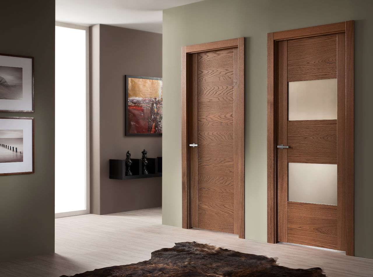 • натуральный шпон светлого ореха, белёного дуба, ванильного ясеня, миланского ореха и т. д. Многочисленные фото светло-коричневых дверей в интерьере ясно дают понять, насколько гармонично и элегантно смотрятся створки с древесной облицовкой в жилых и офисных помещениях. Модели из серий Glasgow, Torino, Piemonte от Academy - ещё одно тому подтверждение;