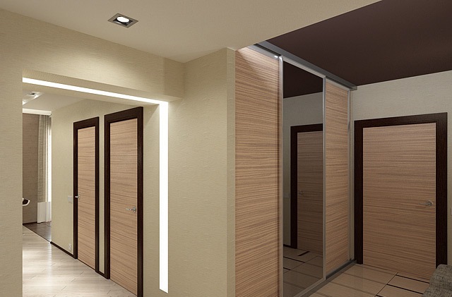 выбеленный дуб и венге. Такие светлые двери с тёмными наличниками в интерьере являются источниками не только света, но и тепла. Противоположные оттенки коричневого наполняют композицию домашним уютом;