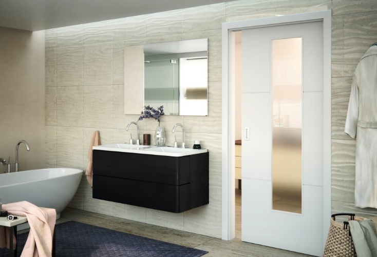 Недавно пришедшие в домашние интерьеры, встраиваемые сдвижные двери успели полюбиться многим хозяевам. Оформление межкомнатных проёмов всегда было непростой задачей при обустройстве небольших помещений. Порой приходилось выбирать: или створка на входе, или свободное пространство. Система, вмонтированная в стену с помощью металлического пенала, предложила альтернативу. Какую бы маленькую комнатку ни предстояло оборудовать, упрекнуть конструкцию в том, что она «ворует» полезную площадь, нельзя, поскольку: